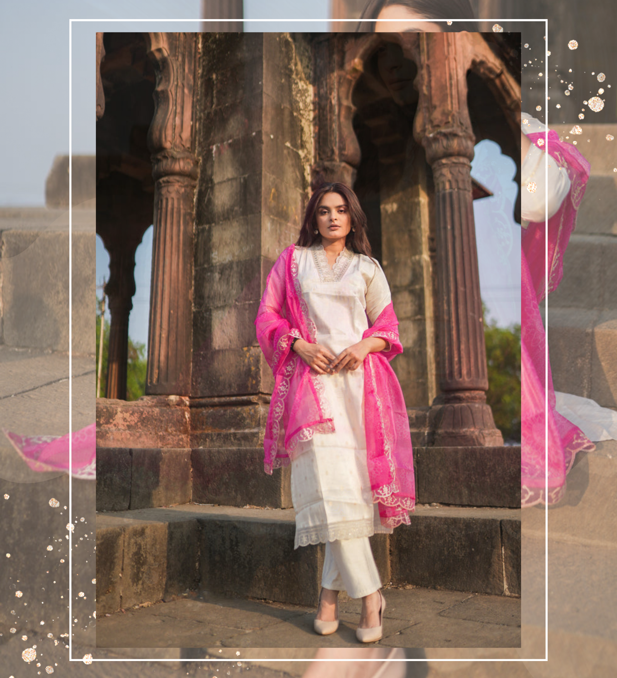 Timeless Elegance ā Roman Silk Kurti Set with Chanderi Dupatta