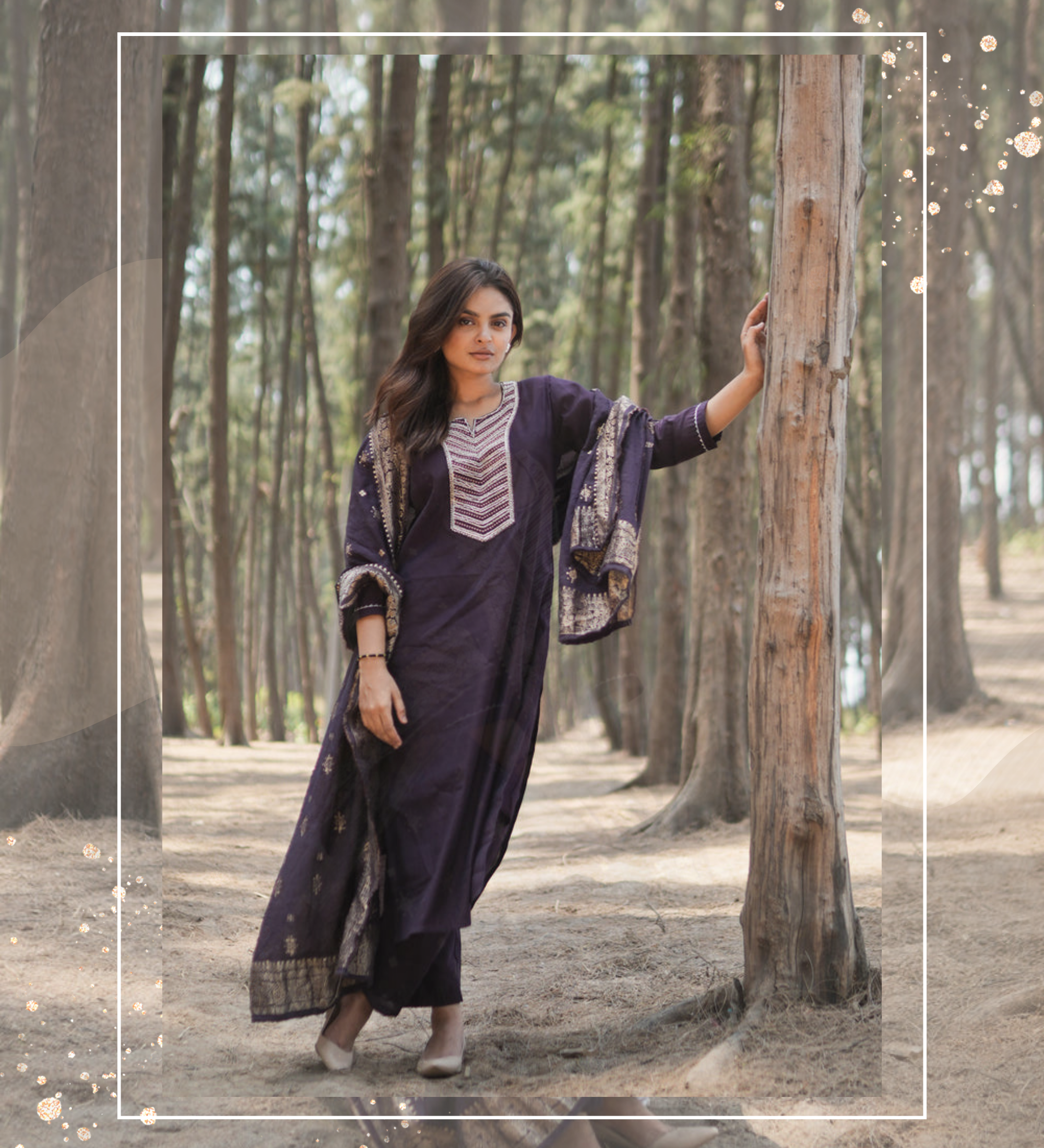 Timeless Elegance ā Roman Silk Kurti Set with Chanderi Dupatta